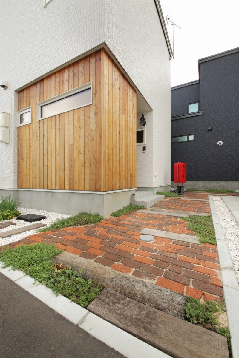 Gallery ガーデンフェンスと芝生で思いっきり遊べるお庭 ナチュラル 札幌市白石区 F様邸 お悩み 外からの目線を気にせずお庭で遊びたい お家にあうおしゃれな外構をしたい お花やグリーンをとりいれたい 木とお花が調和したナチュラルで素敵なお庭が魅力的 レンガや枕木を使ったおしゃれなアプローチが完成。おうちの前から裏庭に続く道には、たくさんのお花やグリーンを!ここを通るたび、幸せな気持ちになれそうです。 プライベート感たっぷりな裏庭 背の高いフェンスを作り、プライベート感たっぷりなお庭が完成しました。カラー砂利や芝を組み合わせて、デザインもおしゃれに。一目をきにせず、思いきり遊んだり、BBQをしたり。家族の楽しい時間を作るお庭です。 この家の施工ポイント BBQスペースカラー砂利カースペースコンクリート平板芝・グリーン花壇アメリカンフェンス