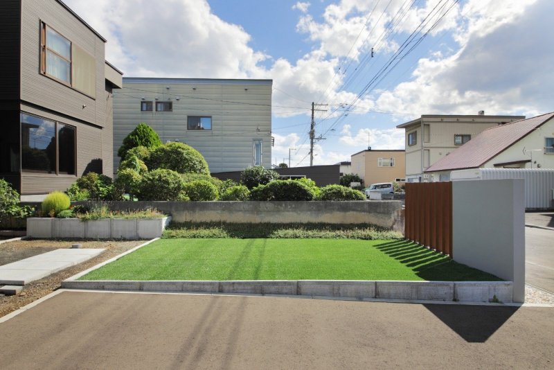 Gallery フェンスが映えるスタイリッシュなお庭 シンプル・モダン 札幌市白石区 O様邸 2人家族 お悩み 雑草の手入れを楽にしたい 駐車スペースを綺麗にしたい BBQスペースが欲しい プライベート感と開放感を兼ね備えたデザイン フェンスと塀を組み合わせて、目隠しでプライベート感を確保しつつ、開放感のある芝スペースに。BBQをしたり、ゆっくり家族で過ごすのにぴったりな仕上がりになりました。 玄関まわりは、レンガのアプローチとカラー砂利で。アプローチを綺麗にすると、階段に置いたお花もとっても映えます。 この家の施工ポイント アスファルトBBQスペースアプローチカースペースフェンス芝生