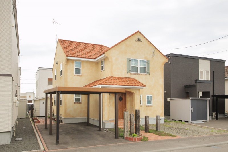 外観デザインを損なわないようにブラウンをセレクト。屋根と柱をツートーン色にしたのもポイントです。