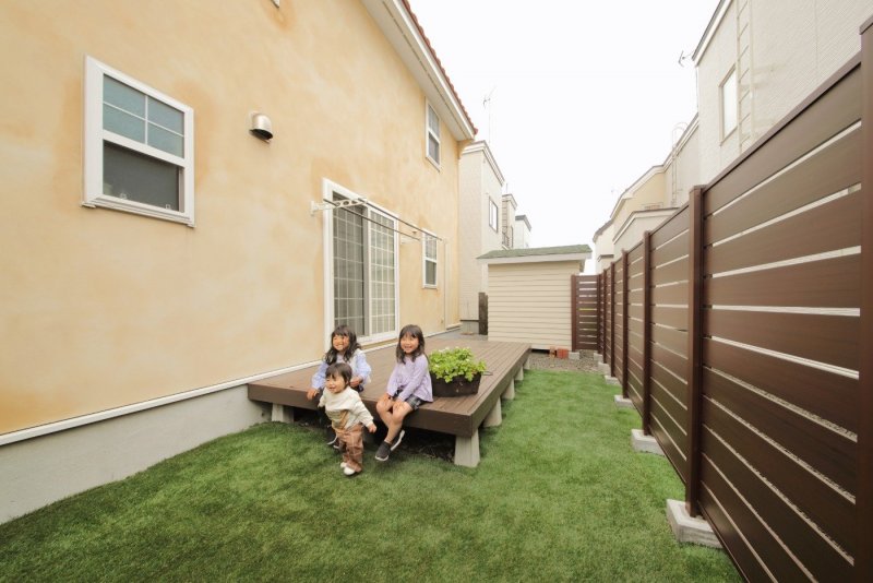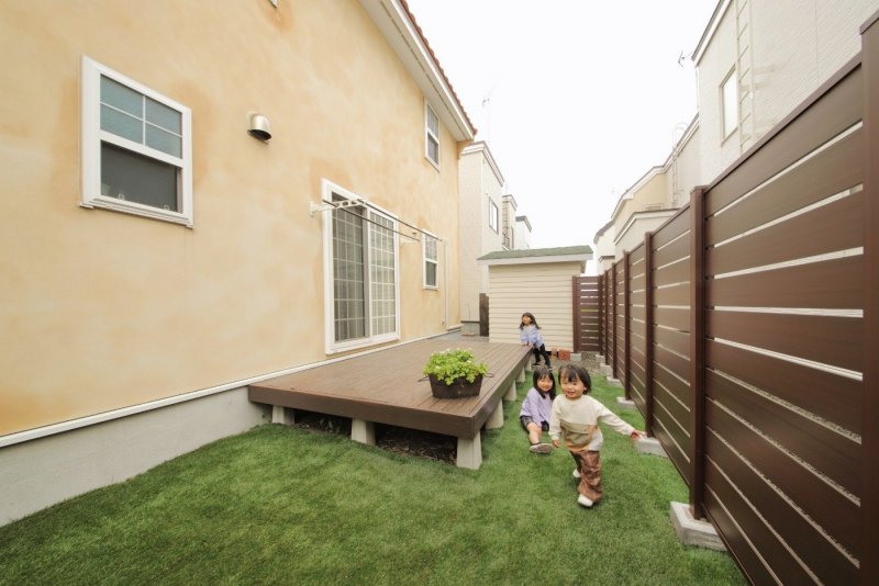 ウッドデッキや人工芝ではかわいいお子様たちがのびのびと遊んでいました!高さのある木目調のアルミフェンスで周囲の視線を気にせずBBQを楽しめます。